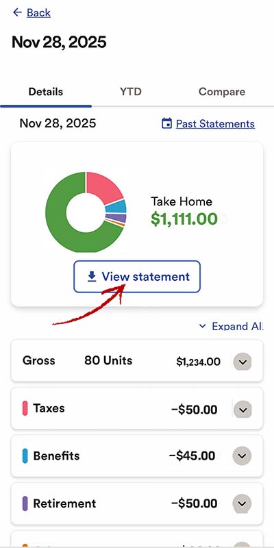 4. If you need to download a PDF pay statement, click on VIEW STATEMENT and download from there.