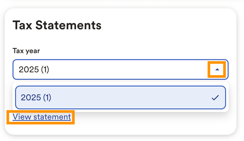 6. Select the tax year you want to view a statement for via the arrow toggle. Then click VIEW STATEMENT.
